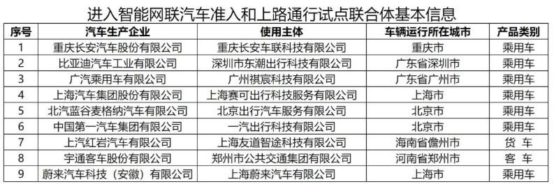 2024年6月,工业和信息化部等四部门公布首批智能网联汽车准入和上路通行试点名单,长安汽车、比亚迪、广汽、上汽、北汽蓝谷、一汽和蔚来汽车等车企入选。推动了自动驾驶技术的规范化和商业化进程。