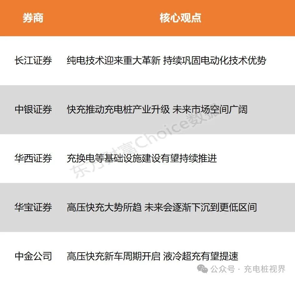 比亚迪发布"兆瓦闪充"技术实现充电5分钟续航增加407公里,券商机构普遍认为高压快充将重构行业格局:长江证券指出纯电技术革新巩固产业优势,中银证券测算2025年充电服务市场规模达80亿,华西证券预判充换电基建将加速布局,中金公司提示液冷超充产业链迎来放量机遇。