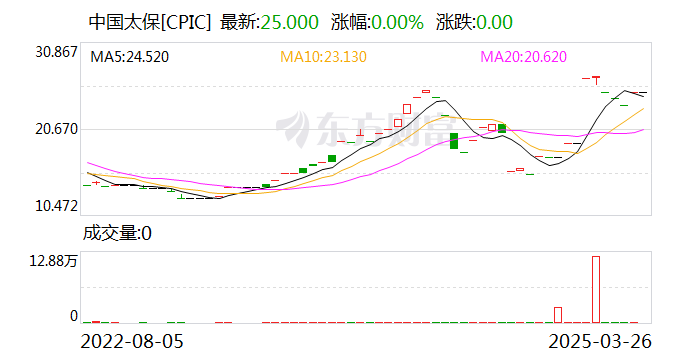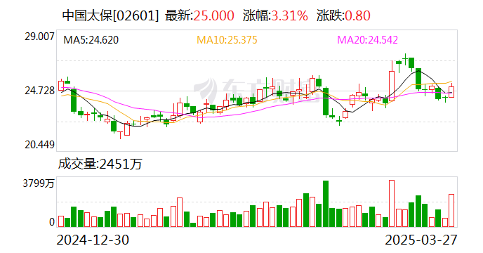 投资收益“立功”,中国太保2024年实现净利润449.60亿元,同比大幅增长64.9%,创历史新高。靓丽的2024年业绩披露后,3月27日,中国太保A股股价报收32.2元,上涨1.39%。