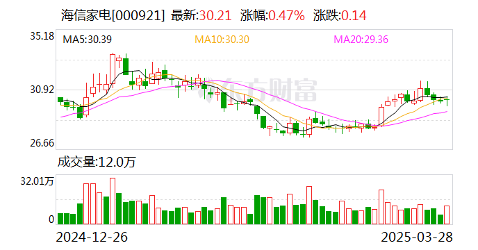 3月28日,海信家电(000921)发布2024年年度报告。报告显示,2024年度公司实现营业收入927.46亿元,同比增长8.35%;归母净利润33.48亿元,同比增长17.99%;拟向全体股东每10股派发现金红利12.3元(含税),同比增长21.42%,体现了对股东的长期承诺和回报。