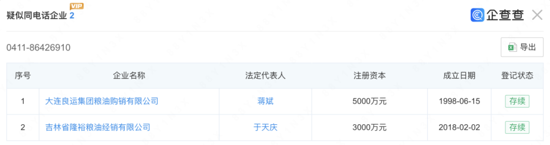 记者梳理发现,上述三家公司之间存在诸多关联。根据企查查资料,隆裕粮油与大良粮运2024年申报的企业电话相同。隆裕粮油由良运集团有限公司在2018年发起设立,良运集团有限公司持有大良粮运90%的股份,且与大连和益2022年变更前地址“辽宁省大连市中山区五五路12号”一致。