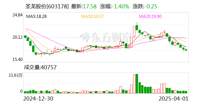 截至今日收盘,圣龙股份下跌1.40%,报每股17.58元,总市值达41.56亿元。