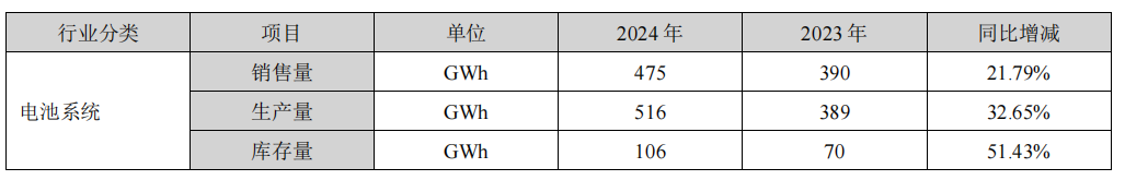 宁德时代电池系统产销情况,图片来源:宁德时代2024财报
