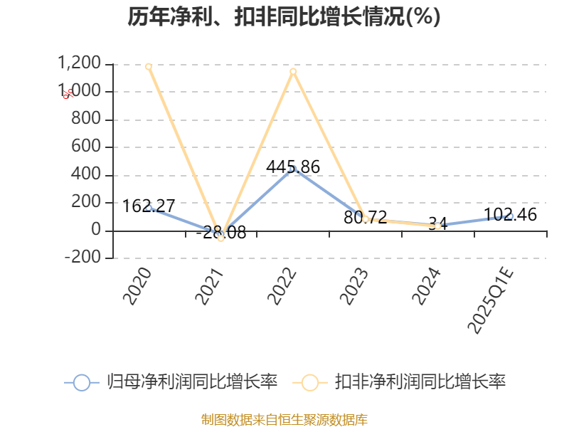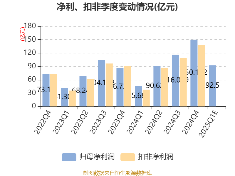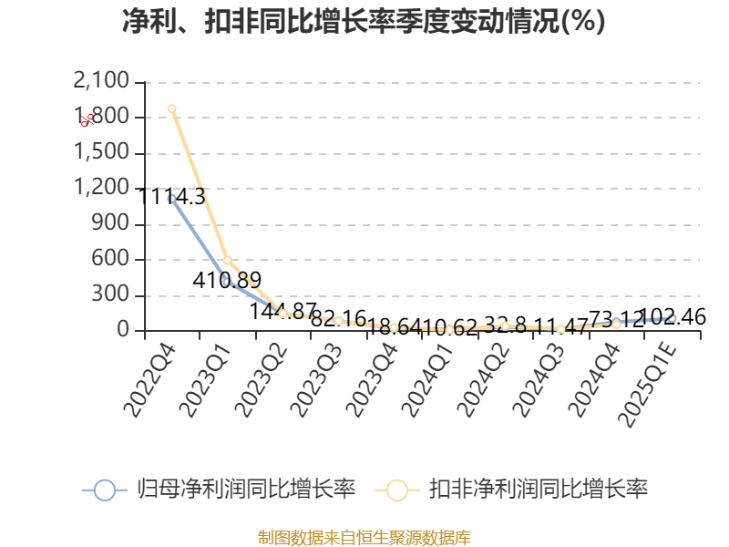 据公告,业绩变动原因为, 二零二五年第一季度,新能源汽车行业依旧保持强劲的增长势能,公司作为行业领军企业,新能源汽车销量再创同期历史新高,且海外新能源汽车销量实现跨越式增长,进一步巩固了全球新能源汽车销量第一的领先地位。此外,公司依托持续扩大的规模效应和垂直整合的战略布局,助力集团业务盈利实现大幅增长。