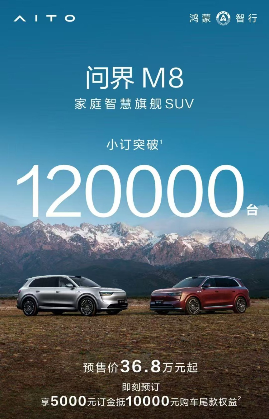 上证报中国证券网讯 4月14日,上证报从赛力斯方面获悉,问界M8火爆预售,截至目前订单数量已突破12万台。4月16日14:30,鸿蒙智行新品发布会将召开,问界M8将正式上市。(林玉莲)