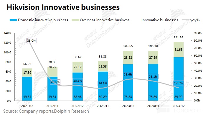 ①在境内的创新业务中,海康威视 2024 年下半年实现营收 89.9 亿元,同比增长 19.3%。从营收体量看,创新业务目前主要集中在境内业务为主。