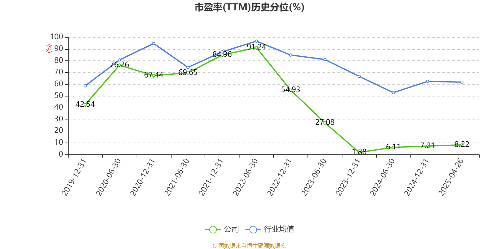 市盈率、市净率为负时,不显示当期分位数,会导致折线图中断。