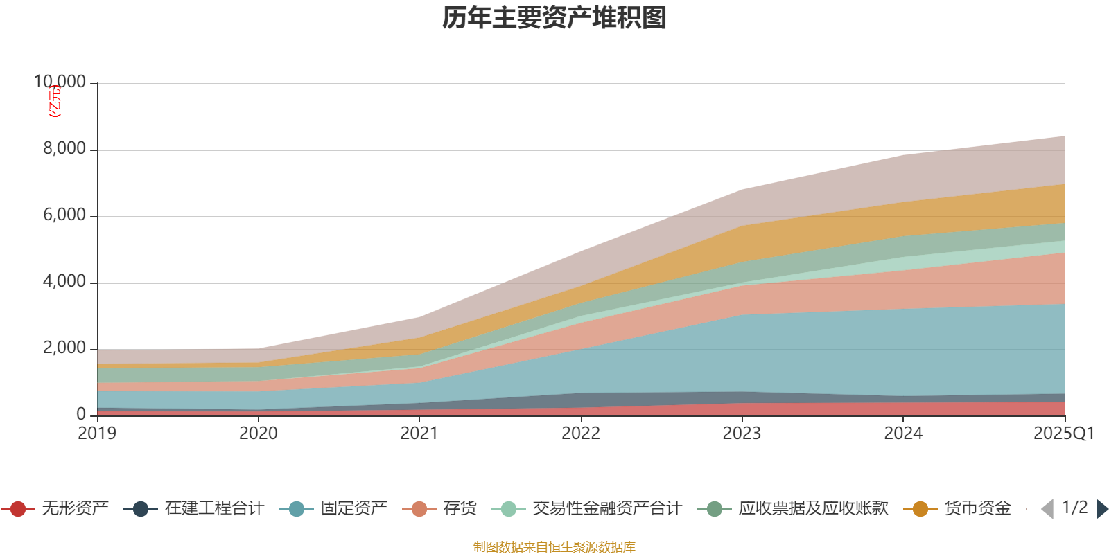 资产重大变化方面,截至2025年一季度末,公司存货较上年末增加33.04%,占公司总资产比重上升3.55个百分点;应收票据及应收账款较上年末减少14.63%,占公司总资产比重下降1.63个百分点;固定资产较上年末增加2.87%,占公司总资产比重下降1.38个百分点;交易性金融资产合计较上年末减少11.18%,占公司总资产比重下降0.89个百分点。