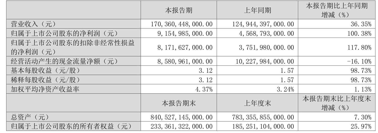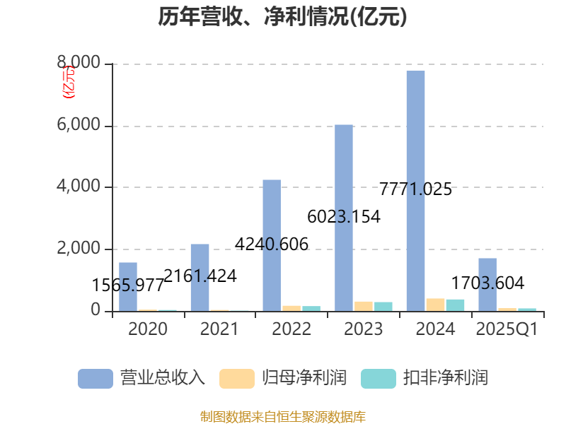 中证智能财讯比亚迪(002594)4月26日披露2025年第一季度报告。公司实现营业总收入1703.6亿元,同比增长36.35%;归母净利润91.55亿元,同比增长100.38%;扣非净利润81.72亿元,同比增长117.80%;经营活动产生的现金流量净额为85.81亿元,同比下降16.10%;报告期内,比亚迪基本每股收益为3.12元,加权平均净资产收益率为4.37%。