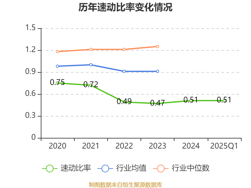 2025年第一季度,公司流动比率为0.81,速动比率为0.51。