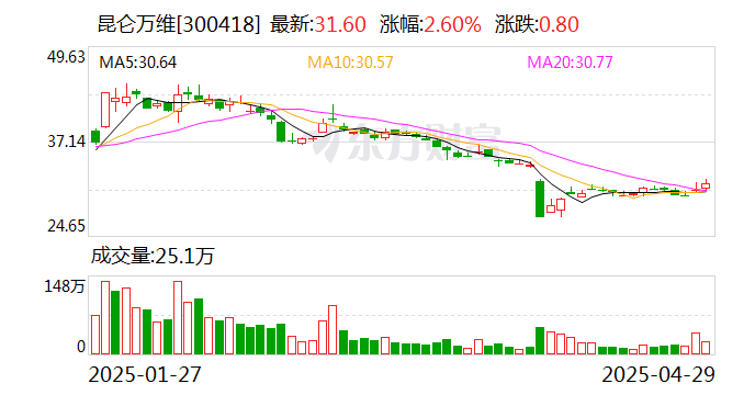 4月29日,昆仑万维(维权)(300418.SZ)(以下简称“公司”)披露2025年第一季度业绩报告。2025年第一季度,公司实现营业收入17.6亿元,同比增长46%;全力推动AI算力芯片、大模型及应用的研发迭代工作,研发费用4.3亿元,同比增长23%。