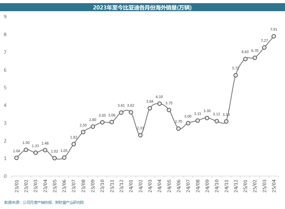 (当然,我们也注意到比亚迪近期海外销量迅猛增长,这是比亚迪当前最集中精力打出的牌。根据产销快报,公司一季度新能源汽车海外销量超过20万辆,同比增长110.5%,环比增长72.7%;4月新能源汽车海外销量达到7.9万辆,同比增长超90%。)