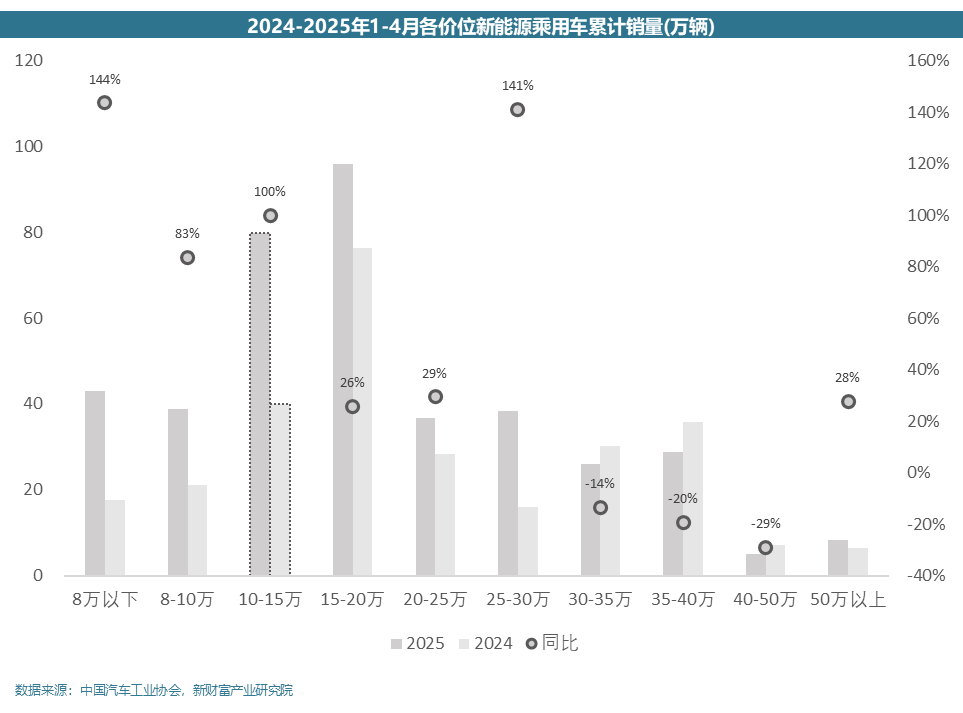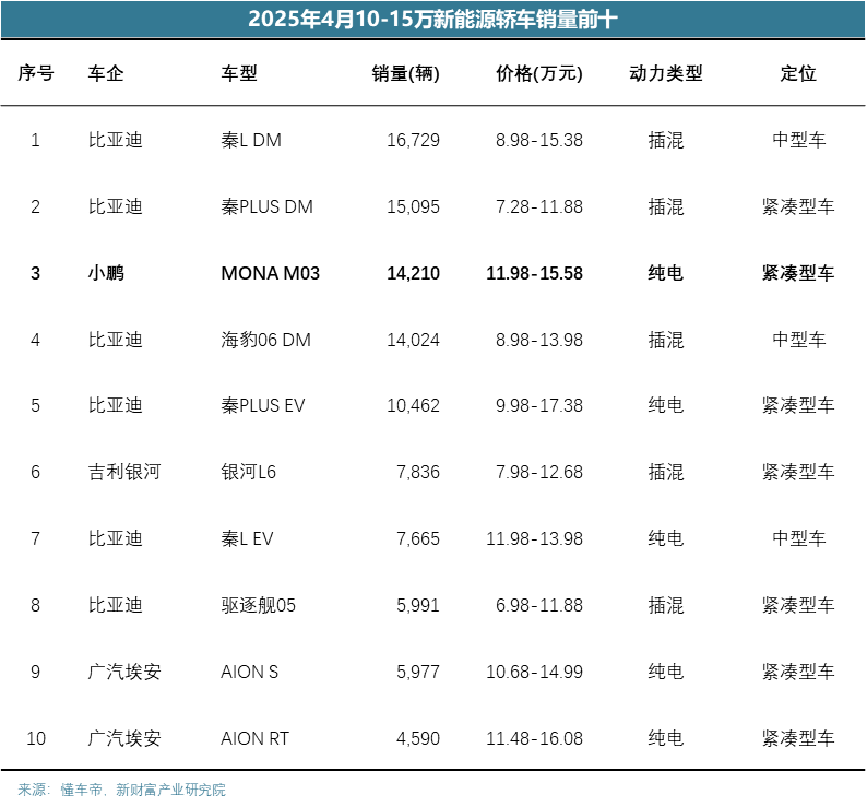 以小鹏MONA M03为例,24年10月发售,今年1-4月累计6万辆左右的销量,同比去年是全新的增量。吉利银河与长安深蓝也是同理,只是可能存在跨10万元价位的统计口径偏差。