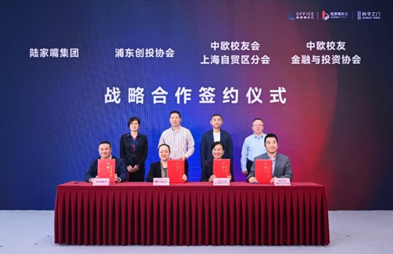 陆家嘴集团在此次活动中与中欧校友会上海自贸区分会、中欧校友金融与投资协会、浦东创投协会签署战略合作框架协议,共同致力于打造上海科创城市地标。