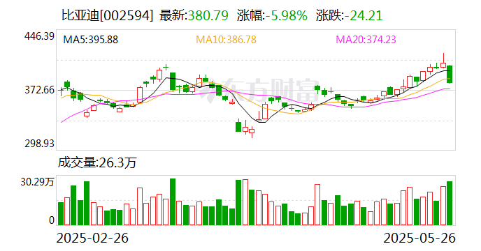 比亚迪成交额达100亿元,现跌6.05%