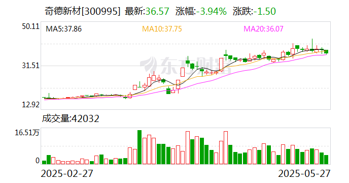 奇德新材(300995.SZ)5月27日在投资者互动平台表示,关于碳纤维市场,公司高度关注并积极参与。 公司部分产品有应用于小鹏汽车部分车型。