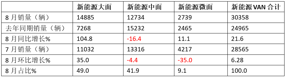 正是上述几个因素的综合作用,导致今年8月新能源VAN车销量同环比“双增”。