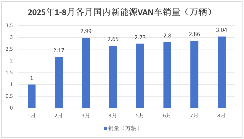 根据终端上牌数据,2025年1~8月各月国内新能源VAN车销量统计: