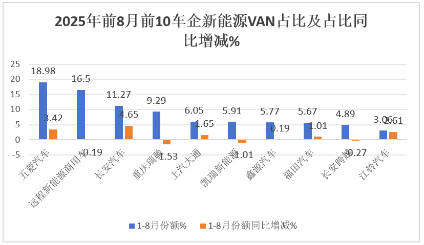 上图表显示,2025年1~8月新能源VAN累计销量中以下几个特点比较明显: