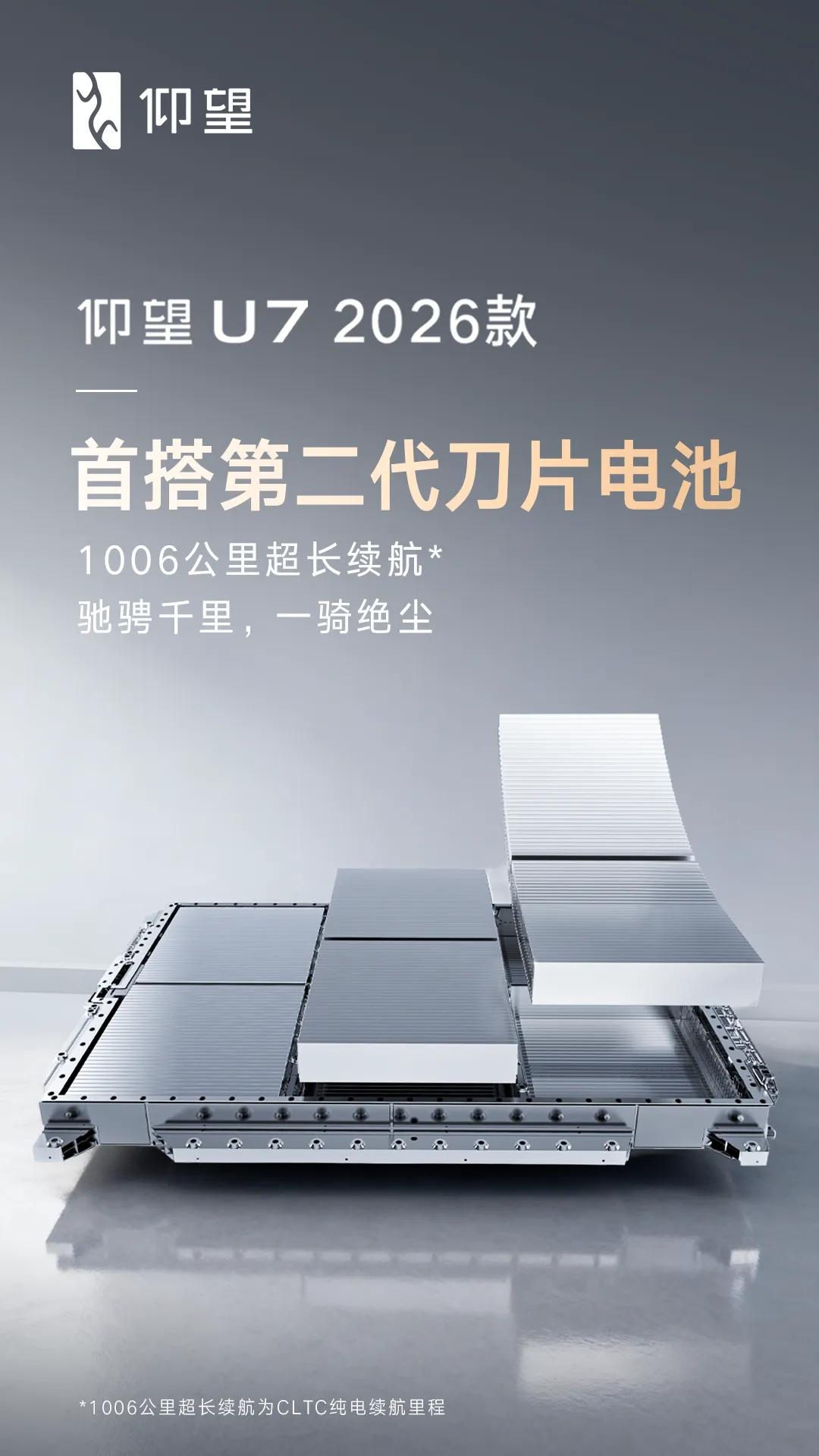 如今,距离第一代刀片电池发布已有六年,比亚迪即将推出的第二代刀片电池,被寄予厚望。目前官方尚未披露其完整技术细节,但结合行业推测及相关信息显示,第二代刀片电池将实现全方位性能跃迁,重点弥补初代产品的短板,在能量密度、续航里程、充放电倍率、耐低温性能及安全性等核心维度实现大幅升级。据悉,第二代刀片电池能量密度较初代提升显著,搭载相关电池包的车型,CLTC续航有望轻松突破1000公里,彻底打破“铁锂续航短”的固有印象。今天比亚迪旗下仰望品牌发布仰望U7将首搭第二代刀片电池,可达1006km的超长续航(CLTC)!