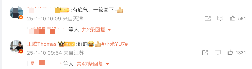 网友们纷纷留言评论称“有底气”“比就比”。小米集团公关部总经理王化也留言称:“如你所愿。”