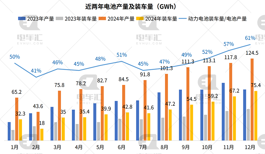 12月我国电池产量为113.1GWh,环比增长1.6%,同比增长45.5%,总产量相比上月大增6.7GWh。