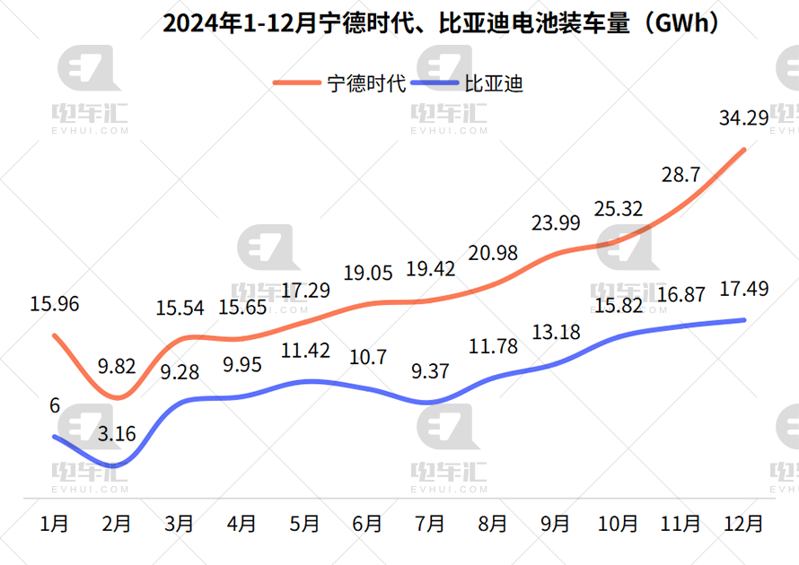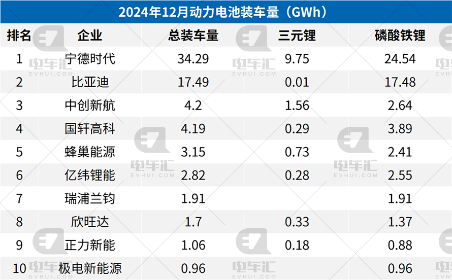 紧随宁德时代之后的是比亚迪,其总装车量达到了17.49GWh,其中17.48GWh为磷酸铁锂电池。