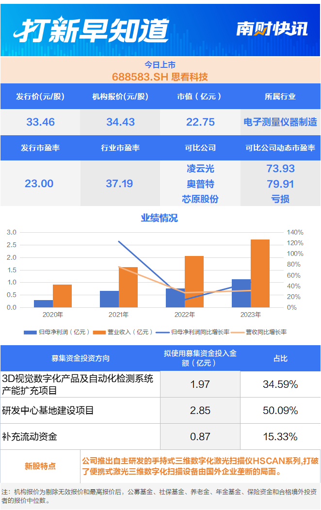 1月15日,有2只新股上市,为科创板上市的思看科技(688583.SH),创业板上市的惠通科技(301601.SZ)。