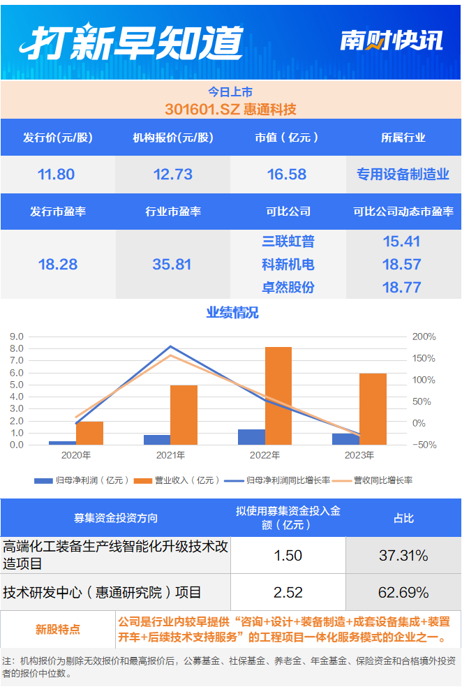 惠通科技主要为尼龙、生物降解材料、聚酯等高分子材料及双氧水生产领域客户提供设备制造、设计咨询及工程总承包服务,获得了国家级专精特新“小巨人”企业等荣誉和资质。
