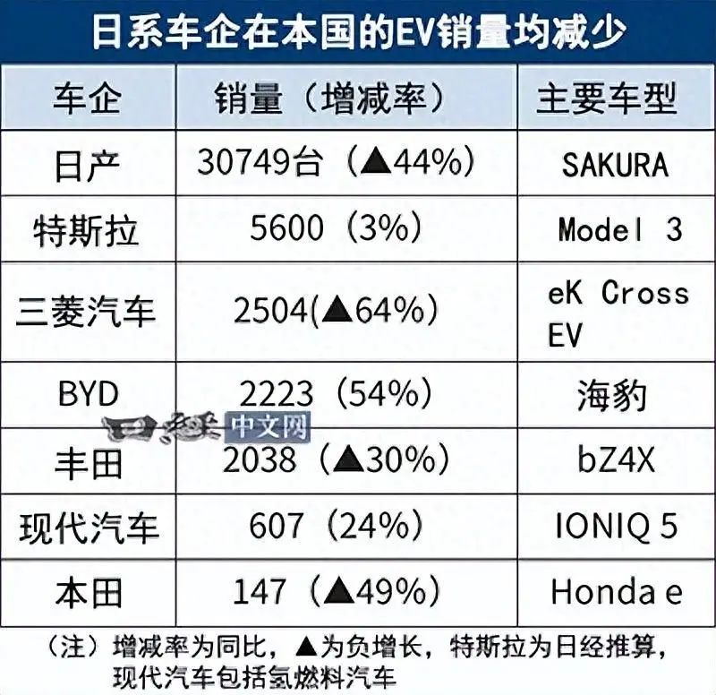 值得注意的是,中国车企比亚迪实现了54%的显著增长,销量攀升至2223辆,首次超越了日本本土车企丰田的销量(2038辆)。