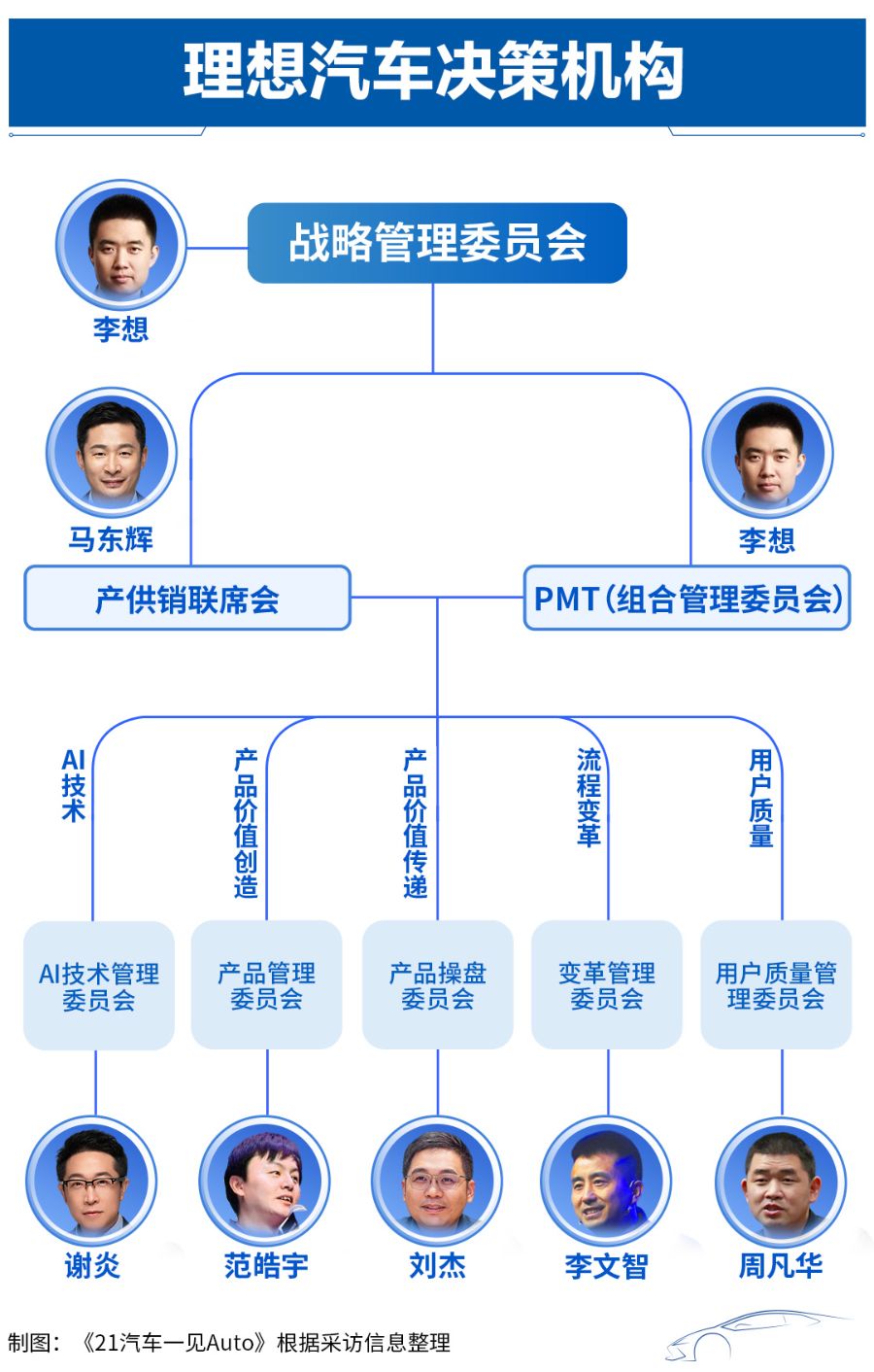 此次决策层的调整是在农历新年前一次战略管理委员会上决定的,只涉及决策层,不涉及实体架构的变动。“是决策线,不是汇报线。汇报线,做的是人员、部门的管理,而决策线,决策的是具体的事。”另一位熟悉理想内部情况的知情人士告诉《21汽车·一见Auto》。