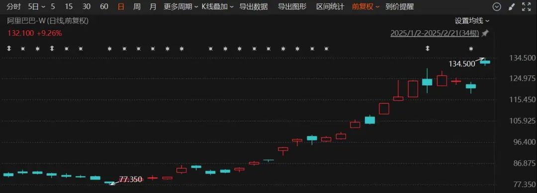 消息面上,阿里巴巴2025财年第三季度营收2801.5亿元,同比增长8%;净利润464.34亿元,同比增长333%;季度资本开支达318亿元,环比大增80%。阿里巴巴美股收涨超8%,阿里IDC合作商万国数据、世纪互联涨超12%。