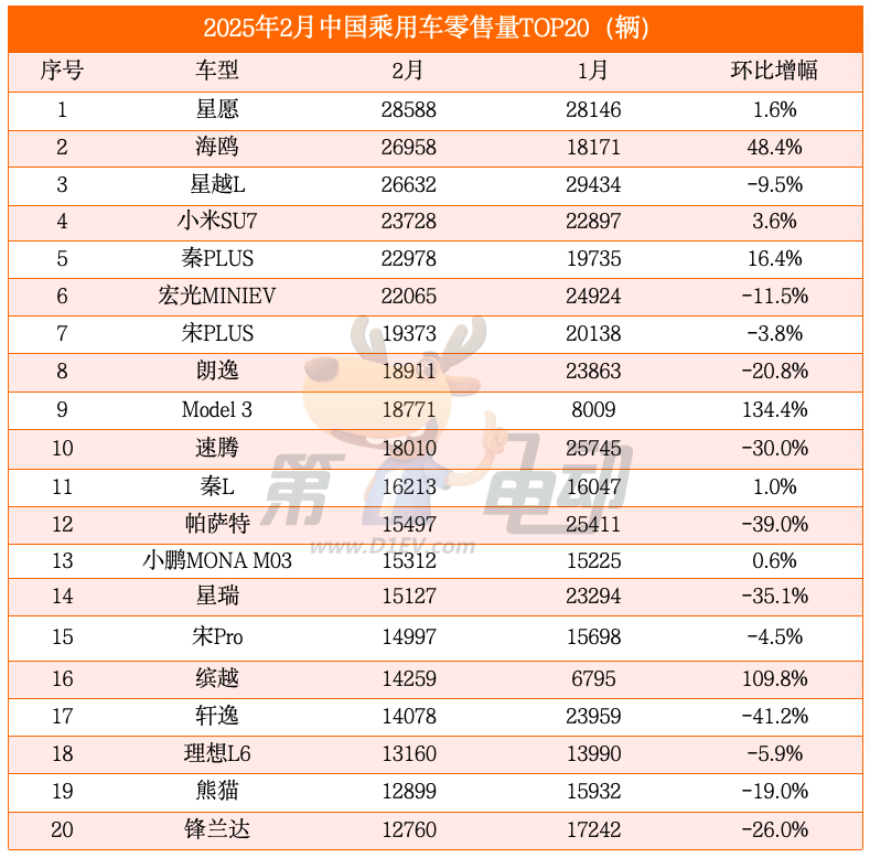 同时,小鹏的市场表现同样可圈可点。尽管2月销量环比微降,但首次超越日产,并首次进入榜单前15,展现出强劲的发展潜力。