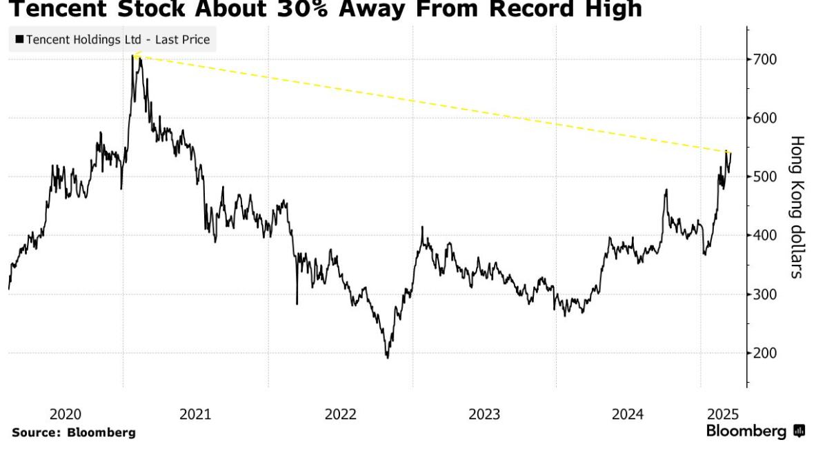 腾讯股价距离创下历史新高仍有30%以上的差距,这一距离已比许多同行更近。作为该行业长期领军企业之一,腾讯若能触及新高,可能有助于象征该行业真正重回正轨。