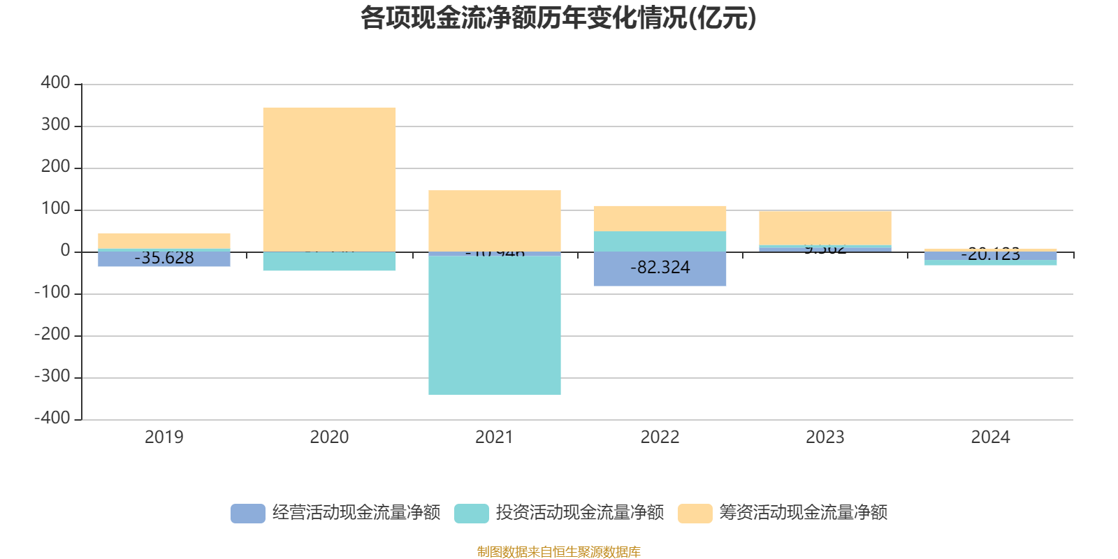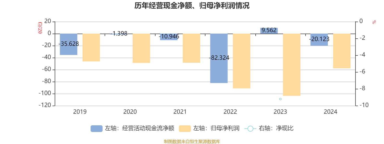 2024年,公司经营活动现金流净额为-20.12亿元,同比减少29.69亿元;筹资活动现金流净额6.69亿元,同比减少73.46亿元;投资活动现金流净额-12.55亿元,上年同期为6.31亿元。