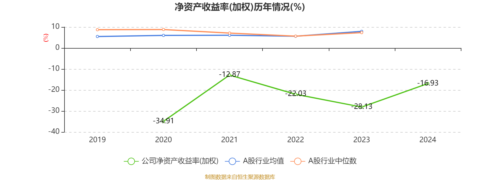 数据显示,2024年公司加权平均净资产收益率为-16.93%,较上年同期上升11.2个百分点。