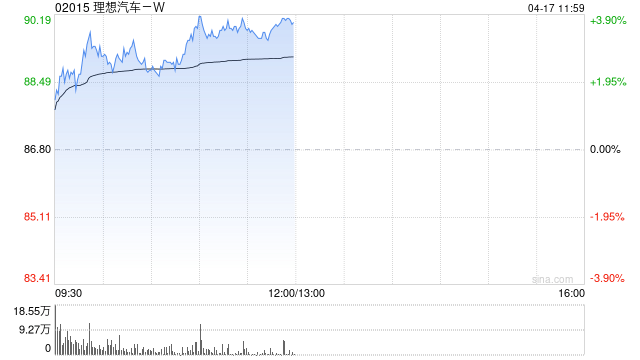 汽车股早盘普遍回暖,理想汽车-W(02015)上涨3.8%,报90.1港元;蔚来-SW(09866)上涨3.77%,报27.55港元;零跑汽车(09863)上涨2.59%,报45.5港元;小鹏汽车-W(09868)上涨2.39%,报75.1港元。