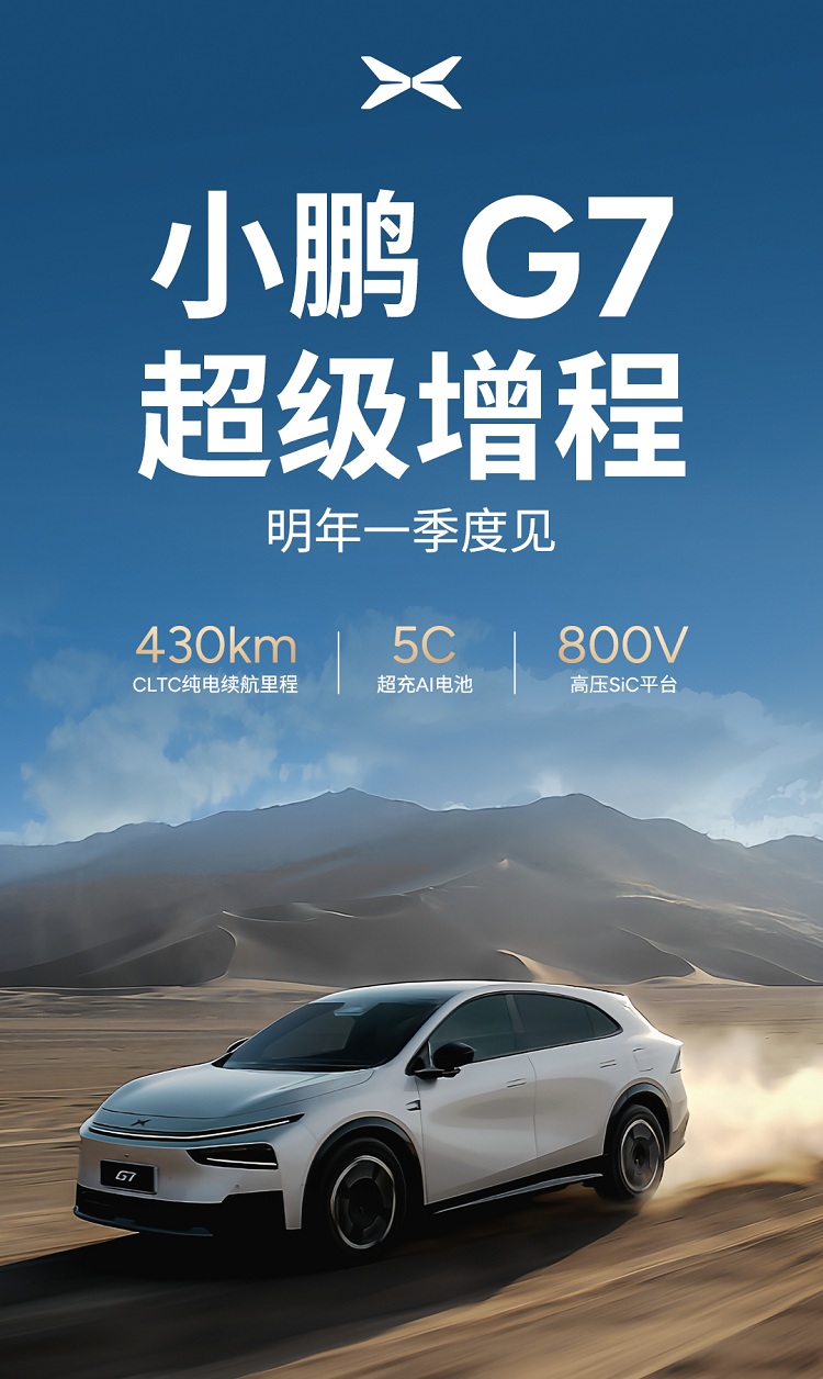 小鹏G7增程版最大的亮点在于纯电续航能力。根据工信部公告,新车WLTC工况下纯电续航达325公里,换算成CLTC标准可达430公里。