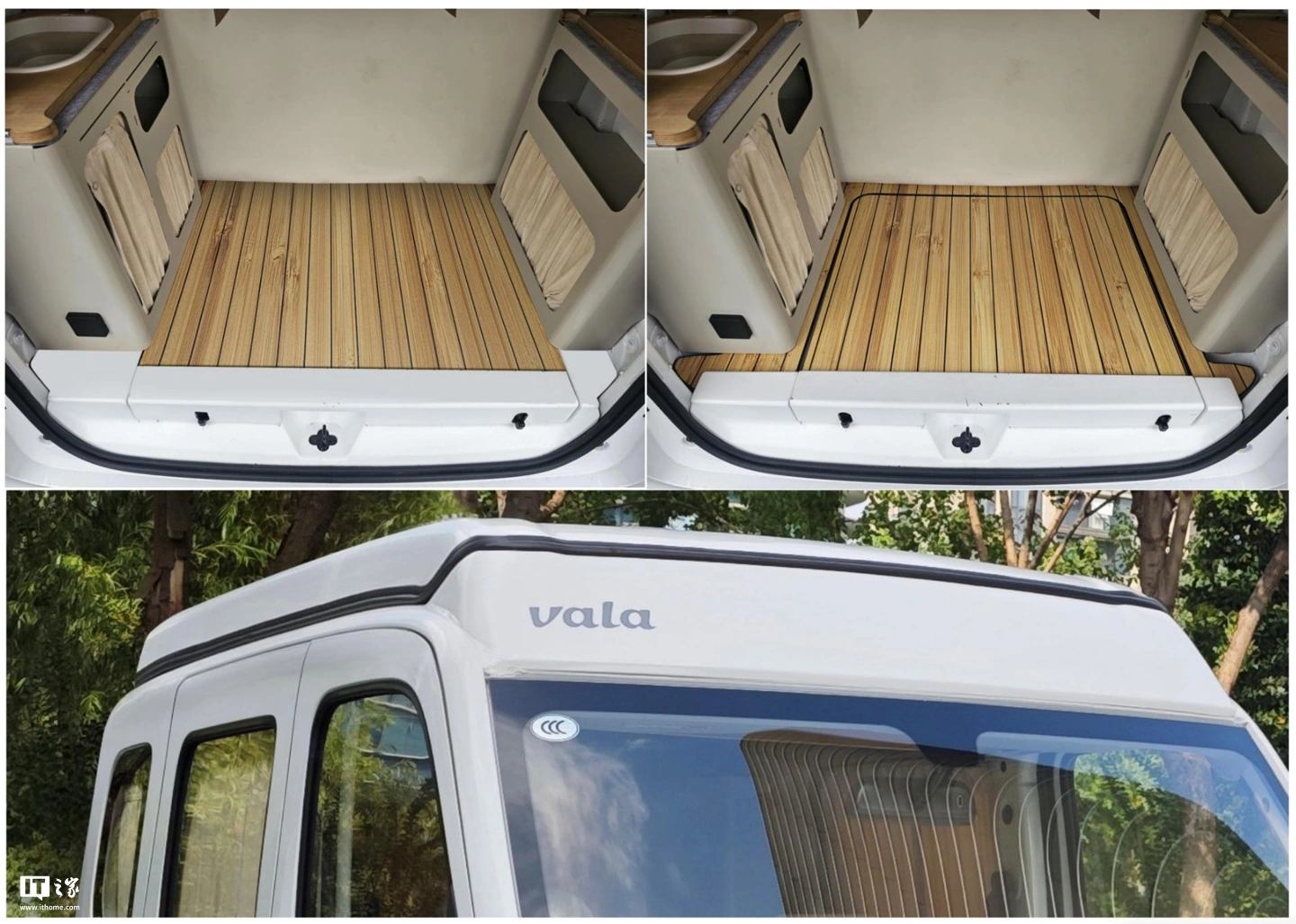 从选装图可以看到,该车配有暖白色内饰,后排配有多个储物空间,尾箱部分则是木饰纹理的地板。