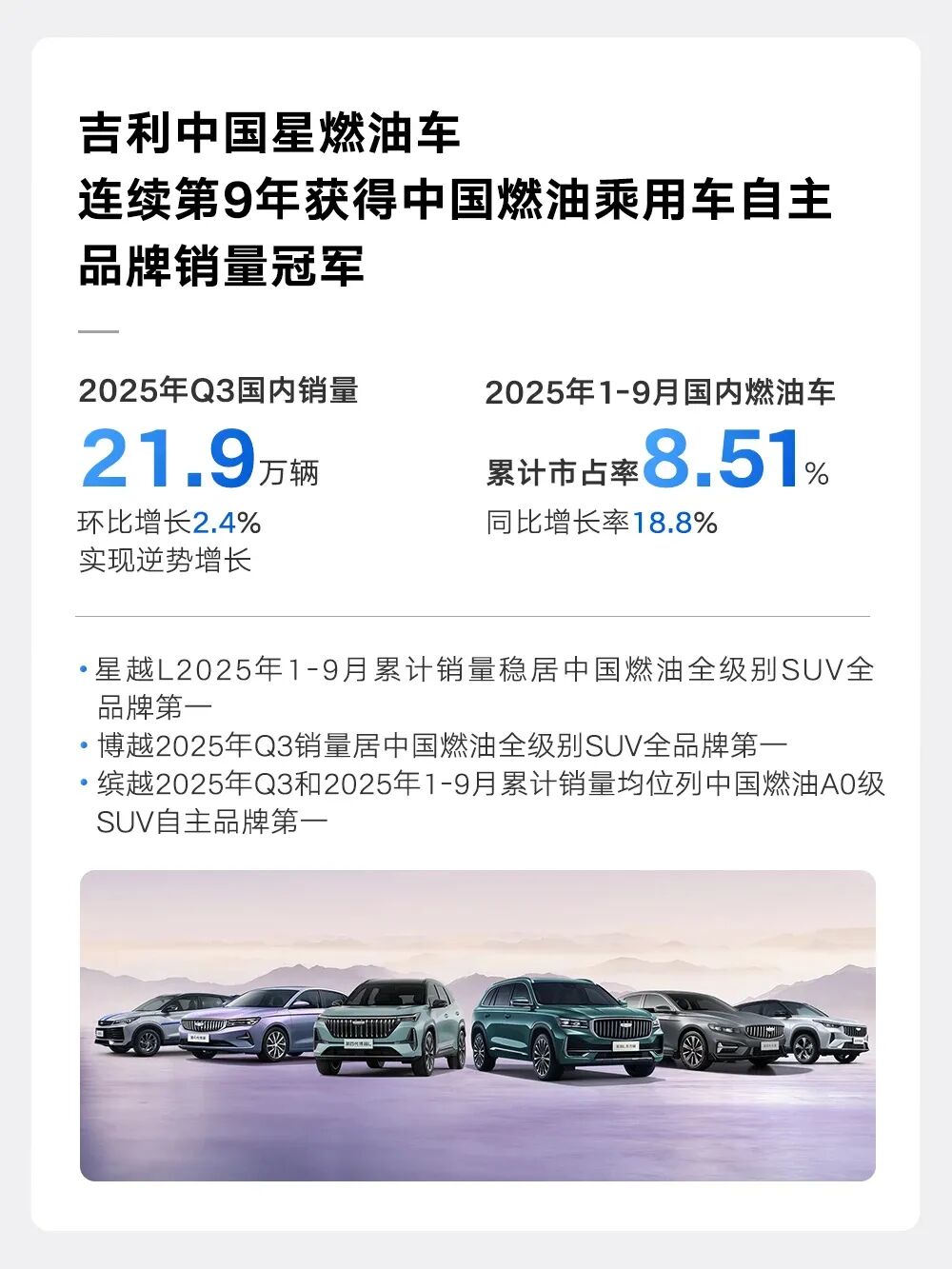 不过,和很多企业不同,吉利是既吃到了新能源的红利,同时也继续在燃油车市场做大。