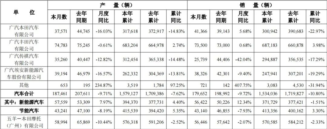 3、广汽集团11月销售汽车17.97万辆,同比下降9.72%
