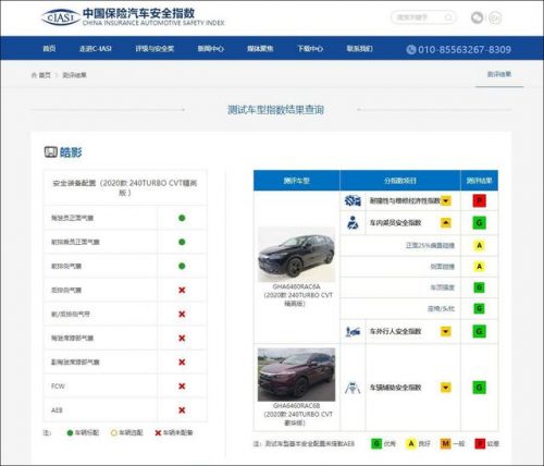 财经网汽车再次访问中国保险汽车安全指数官方网站(www.ciasi.org.cn),已无法通过网传的修改后链接(www.ciasi.org.cn/home/safety/pageone/id/61.html)进入测试结果页面。截止目前,该网站与广州本田皓影汽车相关的新闻仅有一条,是6月12日发布的《广汽本田皓影完成C-IASI全项试验测试》,除了贴出该测试的碰撞试验组图,公告还显示: