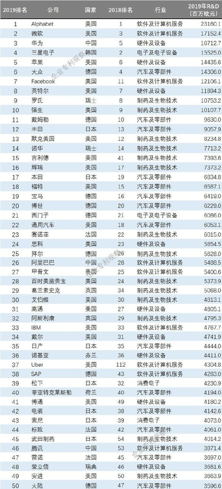 原标题:全球企业研发支出TOP50榜公布 华为第三超三星苹果 来源:手机中国