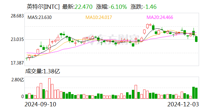 英特尔曾是芯片制造领域的主导力量,但近年来在竞争中落后于台积电,并错过了被英伟达和AMD所抓住的人工智能热潮。今年8月,英特尔宣布裁员15%,并将暂停向股东派发股息,这是英特尔有史以来最大规模裁员,显示这家芯片公司在遭遇业绩下滑之际致力于削减成本,并推进运营模式转型,以扭转芯片制造业务长期亏损的局面。在资本市场上,今年以来,英特尔股价下跌超50%,最新市值为1000亿美元左右。