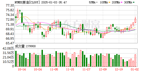 商品市场:国际油价上涨。纽约商品交易所2025年2月交货的轻质原油期货价格上涨1.41美元,收于每桶73.13美元,涨幅为1.97%;3月交货的伦敦布伦特原油期货价格上涨1.29美元,收于每桶75.93美元,涨幅为1.73%。国际金价上涨,COMEX黄金期货上涨28.00美元,涨幅1.06%,报2669.00美元/盎司。