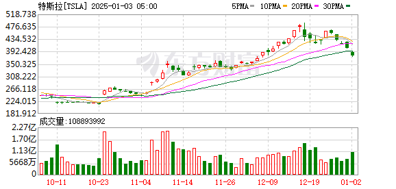 当地时间2025年1月2日,美股高开低走,三大指数均小幅收跌。道指跌0.36%,标普500指数跌0.22%,纳指跌0.16%。其中,标普500指数、纳指均连跌5日,道指连跌4日。