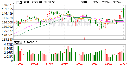 北京时间1月7日晚间,美股三大指数集体高开。其中,英伟达开盘涨超2%,股价再创历史新高。然而好景不长,随后英伟达股价开始迅速走低,一度跌超6%。截至发稿,英伟达股价下跌4.76%,报142.31美元,最新总市值为3.48万亿美元。
