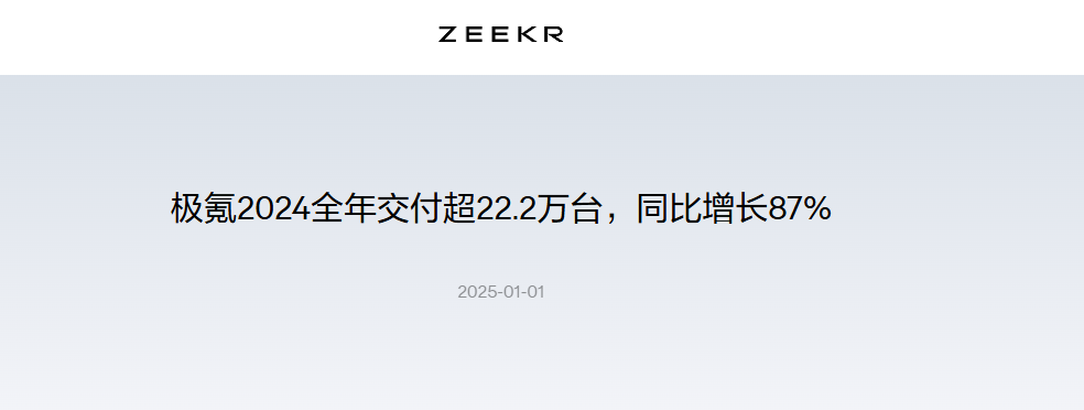 2024年,极氪共交付新车22.2万辆,涨幅达到87%。对于2025年的展望,公司目标是32万辆,涨幅约为45%。
