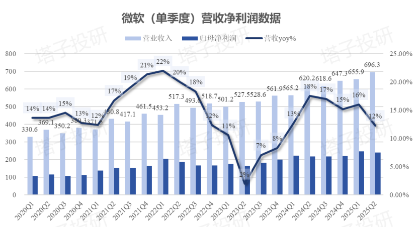 营业收入为696.32亿美元,同比增12%,超出分析师预期的686~690亿美元;