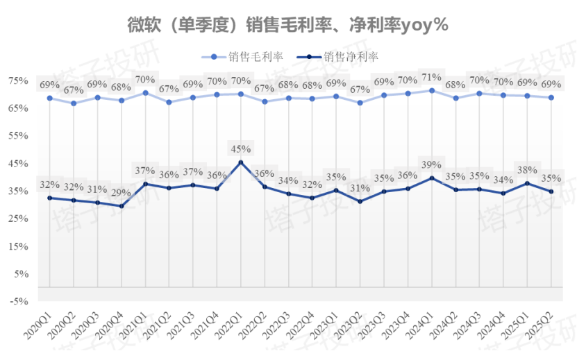 毛利率为68.7%,同比小幅增长,环比上个季度下跌0.6pct;净利率为34.6%,环比下降了3个百分点,显示本季度成本(尤其是资本开支)上升和高利润率的业务营收占比下滑;